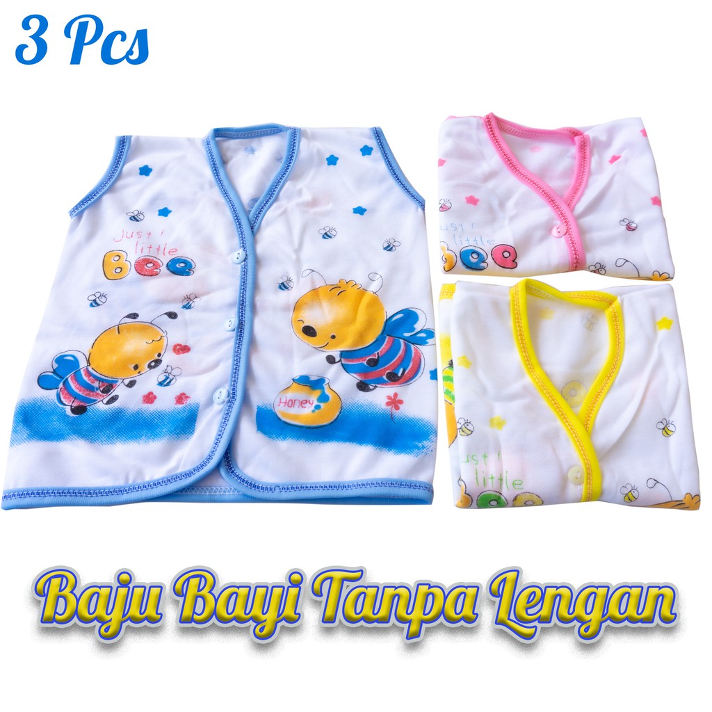 3Pcs Baju Bayi tanpa lengan newborn baju kuntung yukensi . Sumber Gambar : shopee.co.id